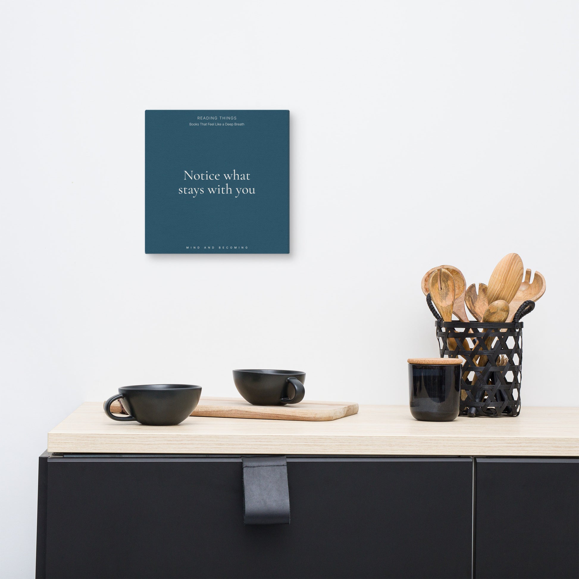 Notice what stays is a small canvas print for the books that keep you company, something steady in the room, with a simple reminder: a place to keep the words that stay.