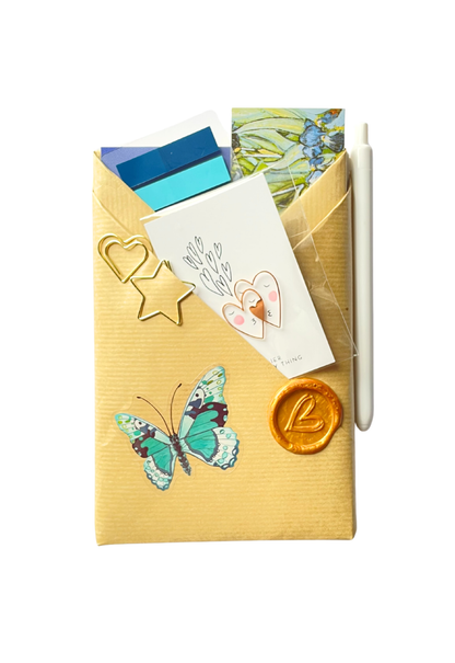 The Wrapped Notepad Edition + Heart Brass Pin - Blue Lined Mind and Becoming